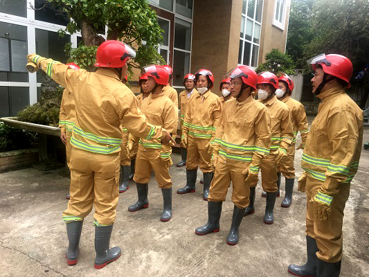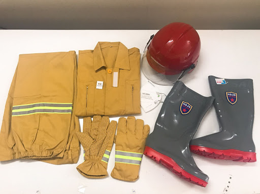 Bộ quần áo bao gồm quần áo chữa cháy PCCC (1 bộ), nón chữa cháy PCCC (1 chiếc), ủng chữa cháy PCCC (1 đôi), gang tay chữa cháy PCCC (1 đôi), khẩu trang chữa cháy (lọc độc) (1 cái) |