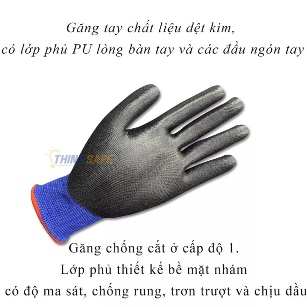 Găng tay được dệt kim chắc chắn nhờ vào mật độ vải cao kết hợp với sợi chỉ nhỏ nên độ ôm tay rất tốt cho người sử dụng, cho cảm giác tiếp xúc chính xác. Lòng bàn tay và các đầu ngón tay được phủ lớp PU tạo độ bám tốt khi cầm nắm. Sợi găng tay cấu tạo nylon giúp thoáng khí.